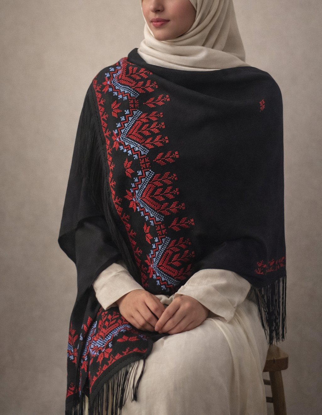 This embroidered shawl tells a story of authentic Palestinian heritage.