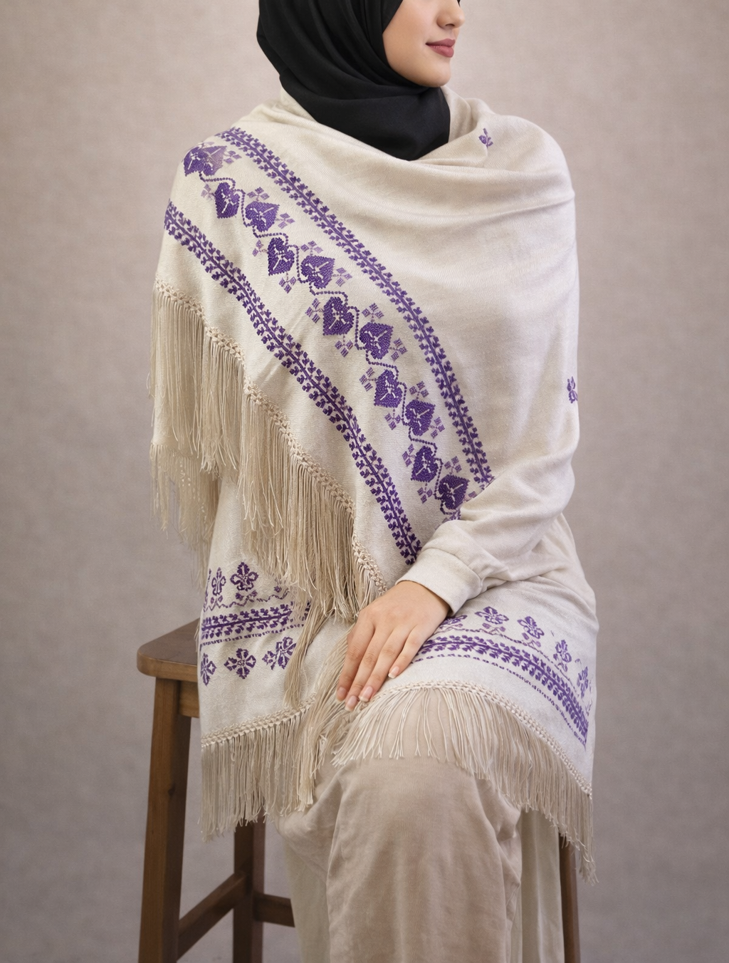 This embroidered shawl tells a story of authentic Palestinian heritage.