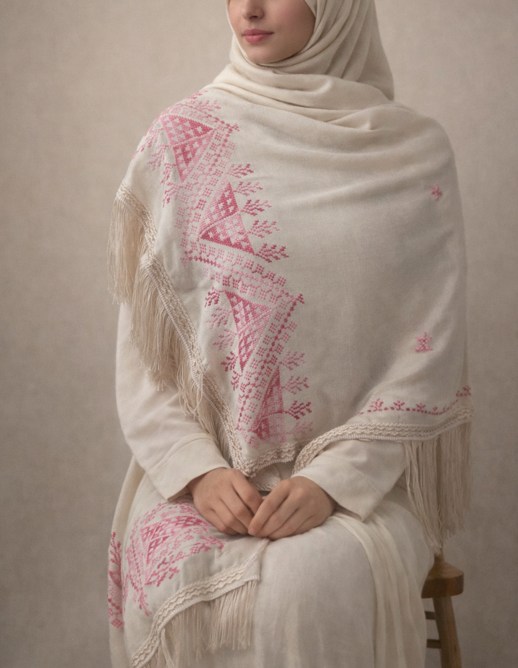 This embroidered shawl tells a story of authentic Palestinian heritage.