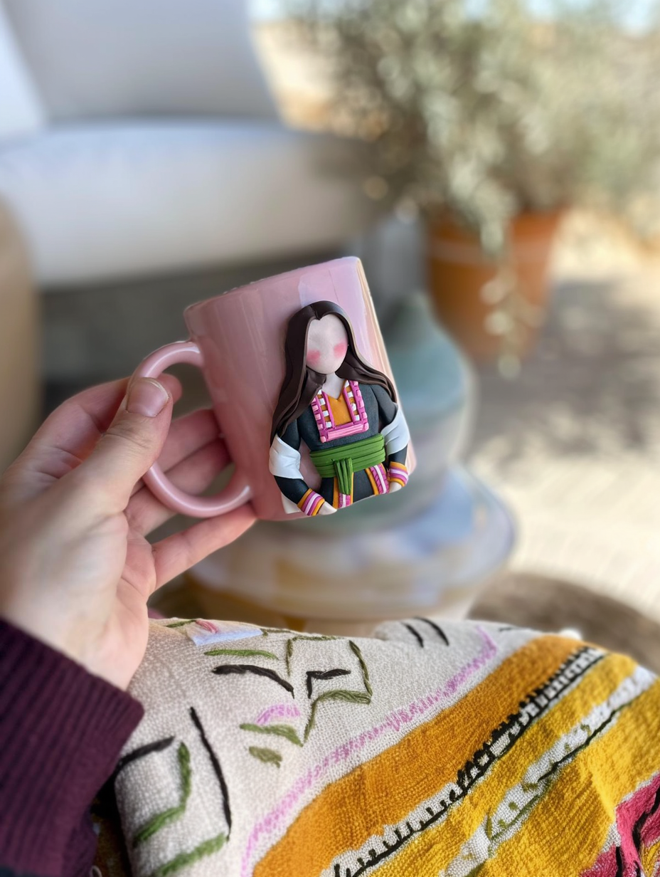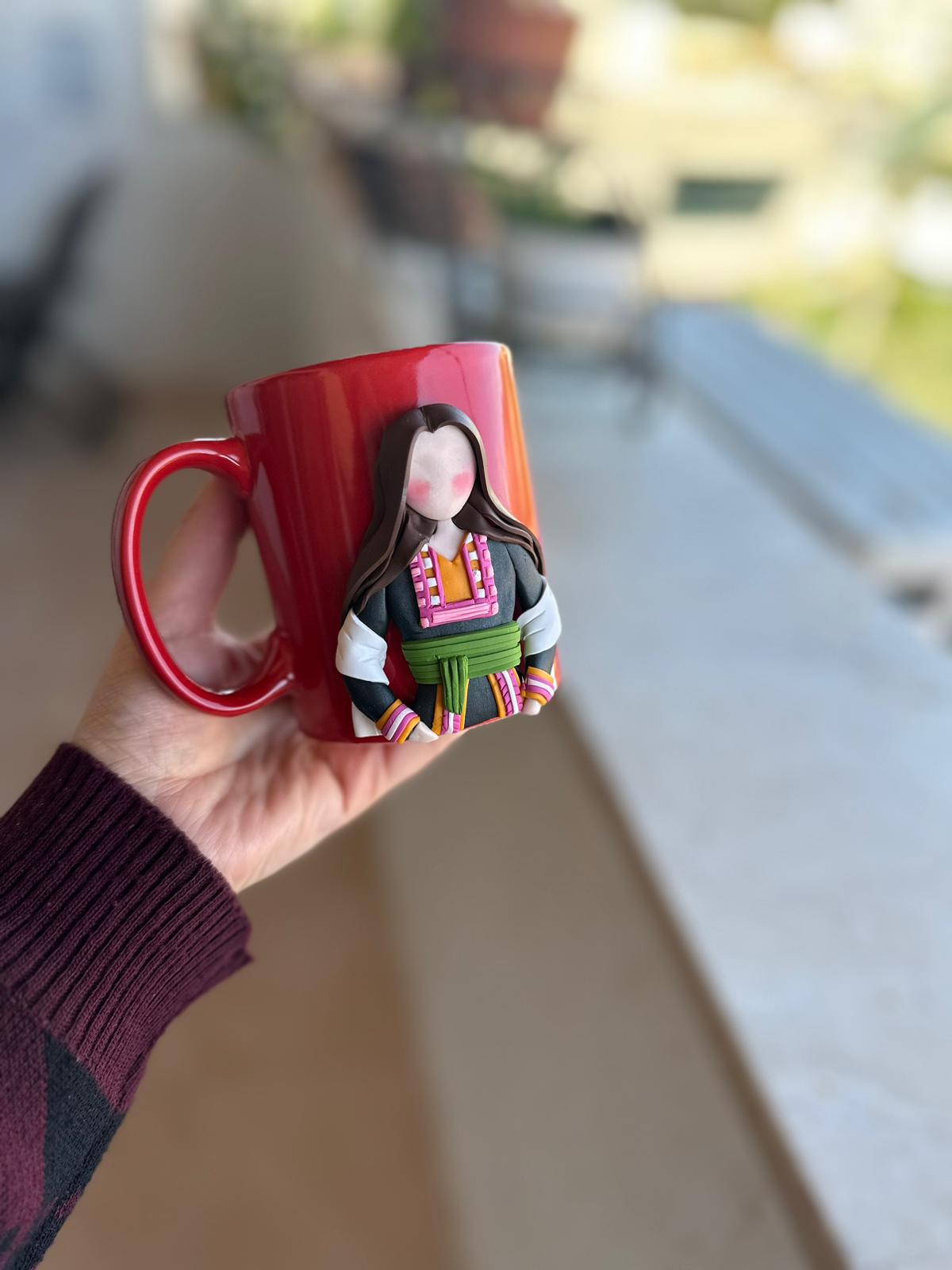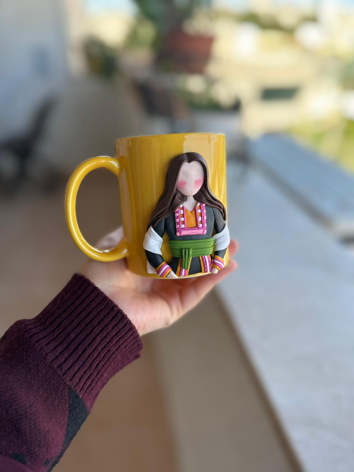 Handcrafted polymer clay mug with designs inspired by the rich heritage of Palestine, blending